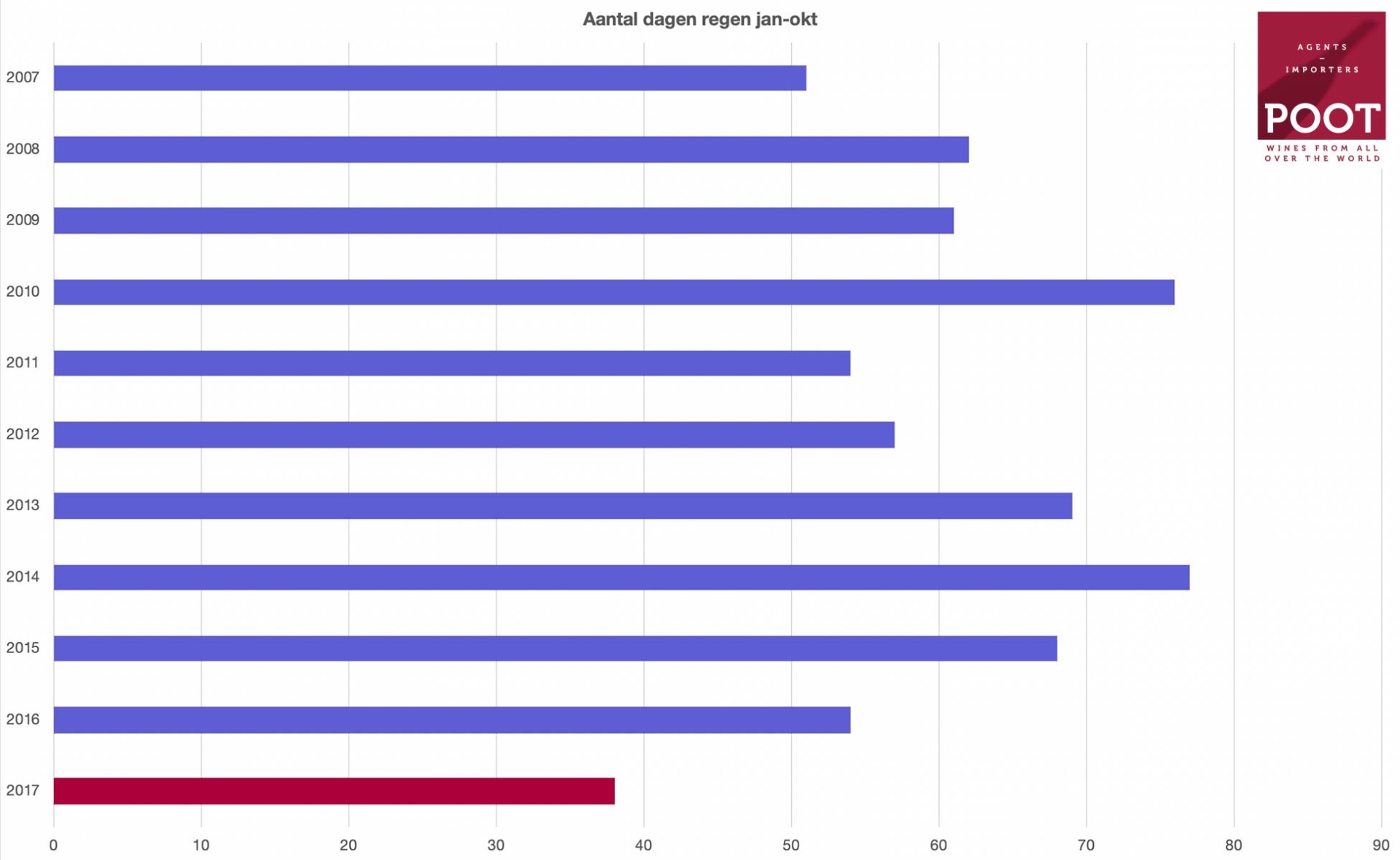 De combinatie van warmte en weinig neerslag zorgde ervoor dat droogte een maatgevende factor werd in 2017. Dit leidde tot waterstress in diverse wijngaarden, met name de lager gelegen wijngaarden en de op het zuiden gerichte percelen. In watervasthoudende bodems (met meer klei) konden wijnstokken, met name de oudere, putten uit waterreserves van regen uit de lente.