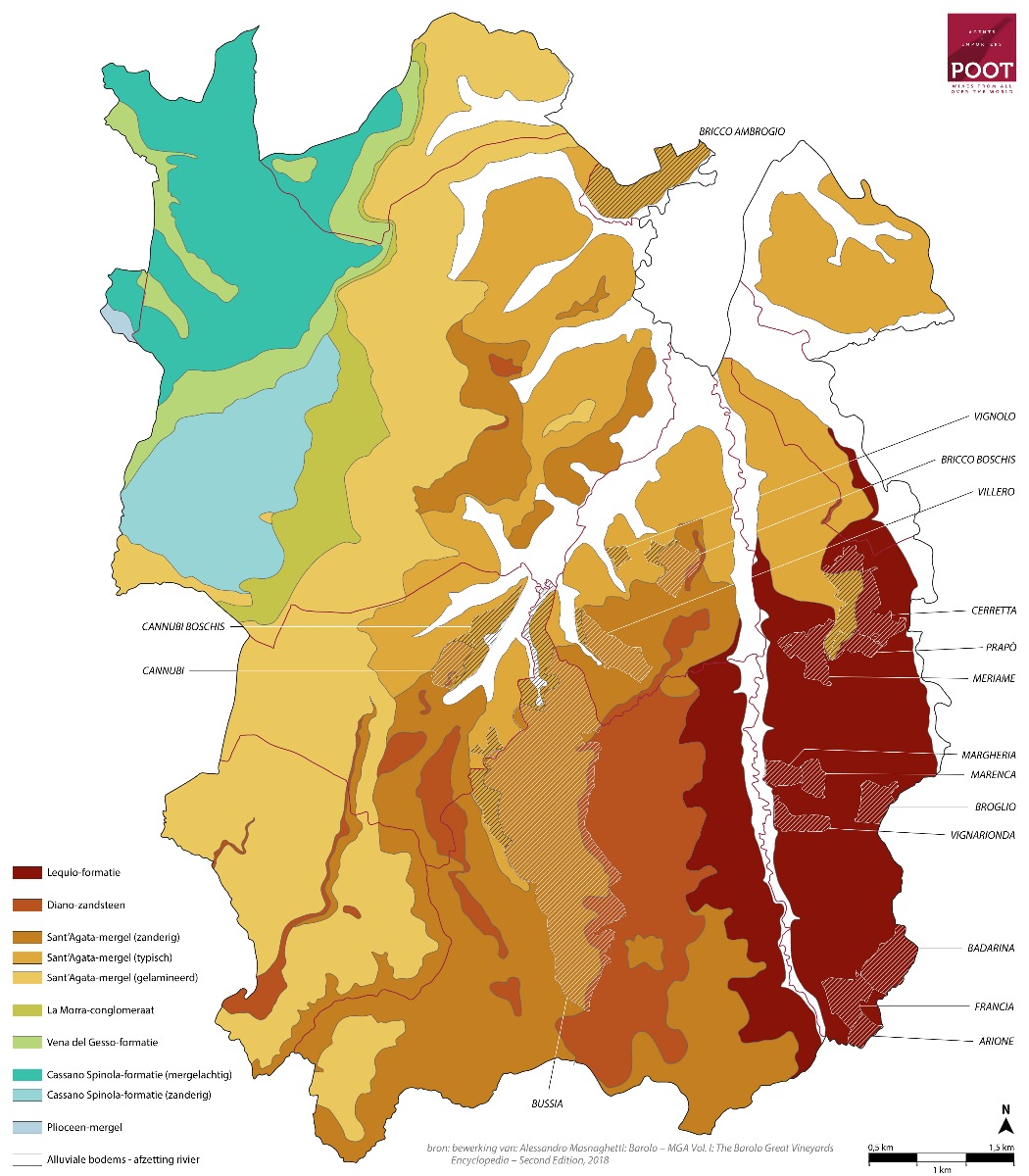 De bodems van Barolo zijn, van oud naar jong, op te delen in de volgende soorten, waarbij we de belangrijkste bodems extra uitlichten: